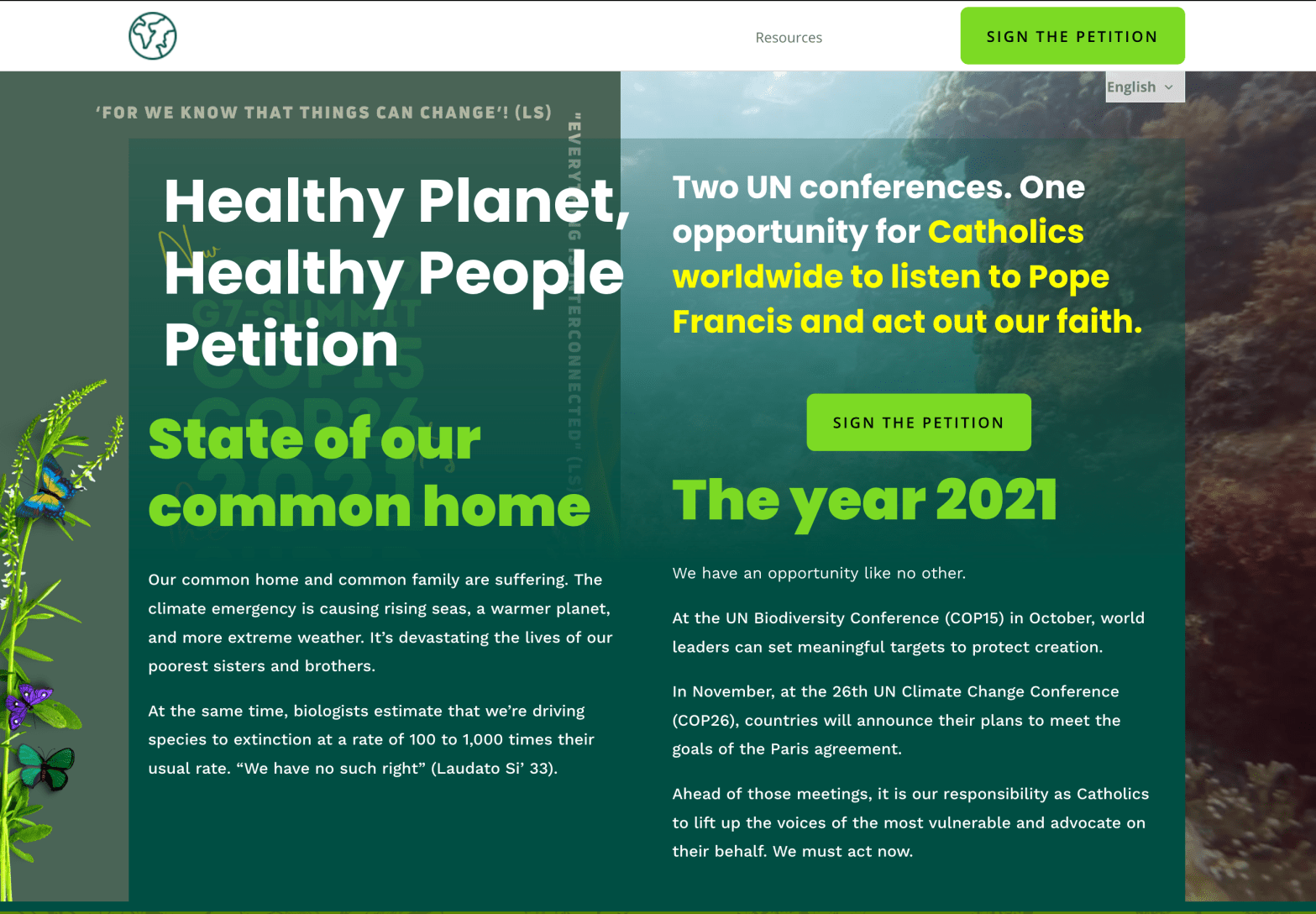 The Laudato Si movement is gathering signatures to send this Catholic Petition [https://thecatholicpetition.org] to 2 UN conferences coming up with 1.5 million signatures from around the Globe, hoping for 20,000 signatures from the U.S.