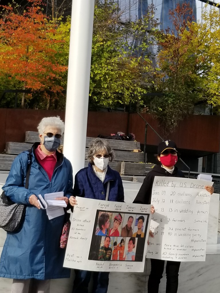 On November 13, PCMNY met at the Drone Plinth on the Highline in Manhattan, to protest the use of killer drones that are used by the US military with seeming disregard for accountability or respect for non-combatant life.