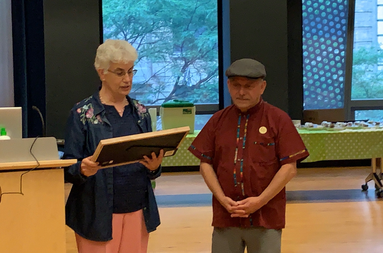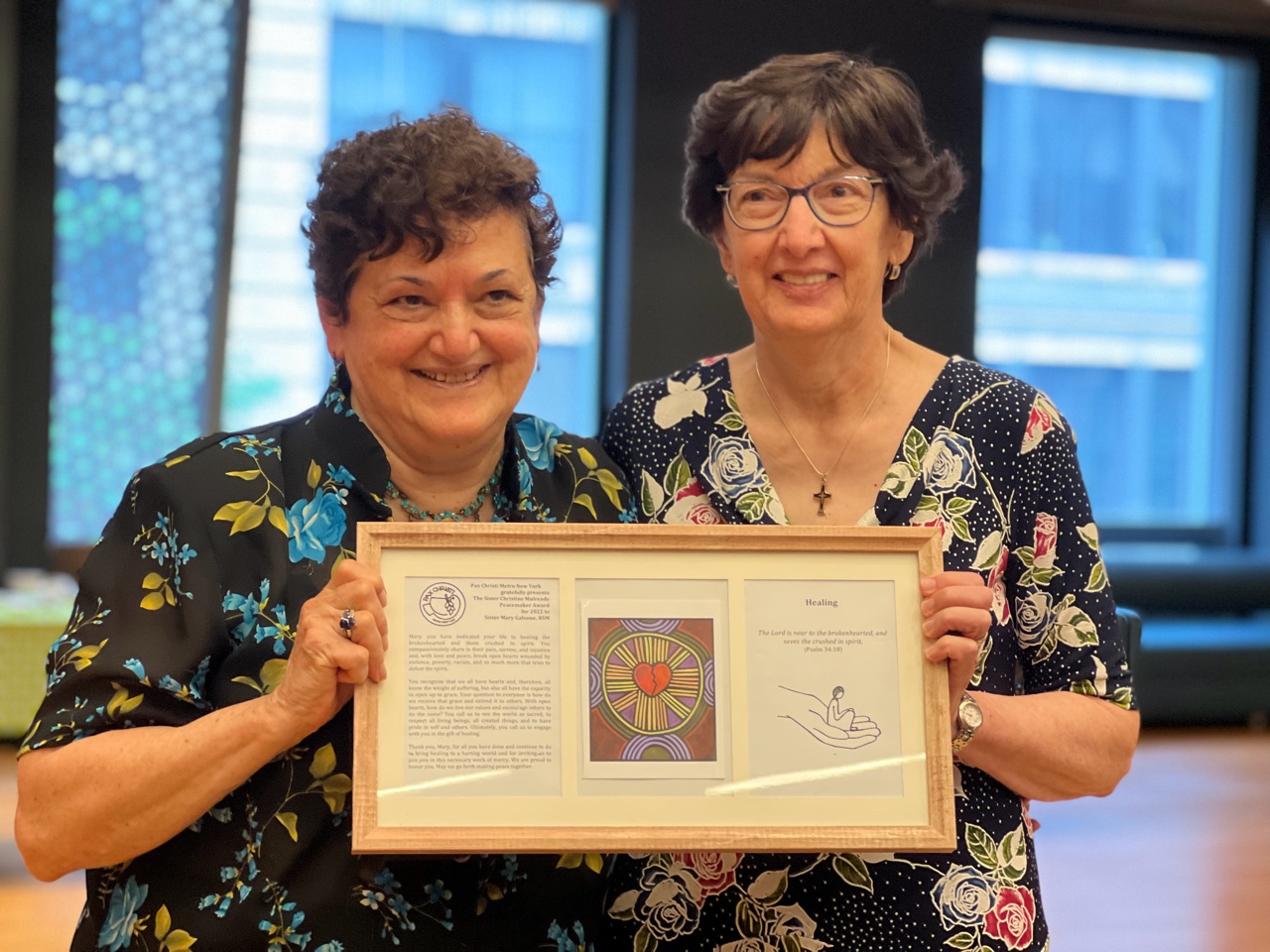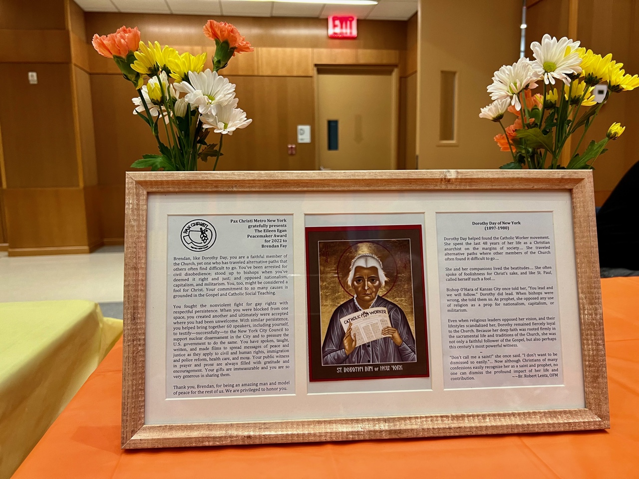 After more than two challenging years of Covid isolation, office relocation, and administrative changes, the hybrid (live + Zoom) Awards Reception at Xavier High School on June 11 felt like a milestone for Pax Christi Metro New York. Granted, the sound system was initially uncooperative, but eventually Sean Adcroft got the upper hand. It was heartening to actually be with people in the same room, both Pax Christi friends and guests of the honorees. Best of all, our honorees not only told us about themselves and what they have done for peace, they also told us how important Pax Christi is to them. Pierre, Sr. Mary, Brendan, and Caroline are all people who care deeply about doing for others. At the reception they showed us who they are by telling us how much they value what we do. We needed to hear that! We can now feel renewed confidence going forward. Thanks to everyone who helped to make the reception such an affirming experience.