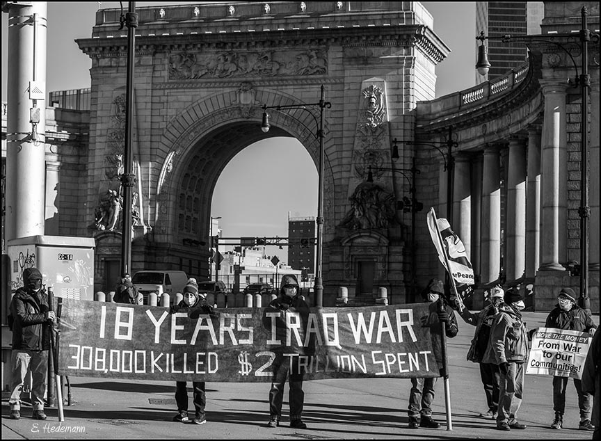 Please join us, Saturday, March 19th 2022. NYC WRL is planning a demonstration against the U.S. war in Iraq for Saturday, March 19th, beginning noon in Times Square, then marching (at 12:30) to the drone sculpture on the High Line (at 30th St.) to continue the vigil.